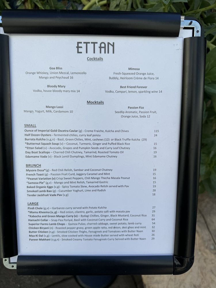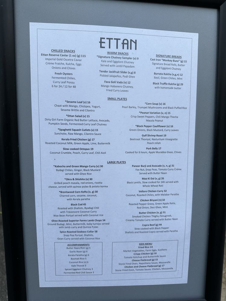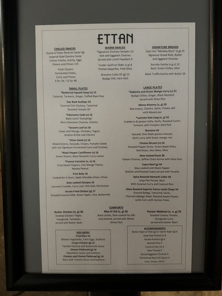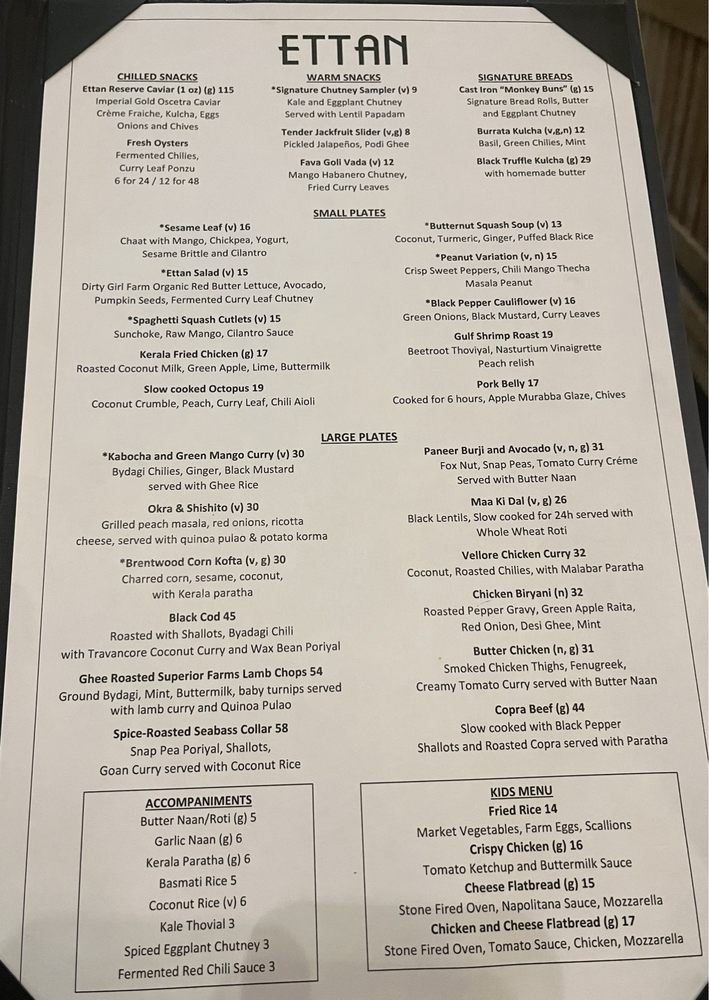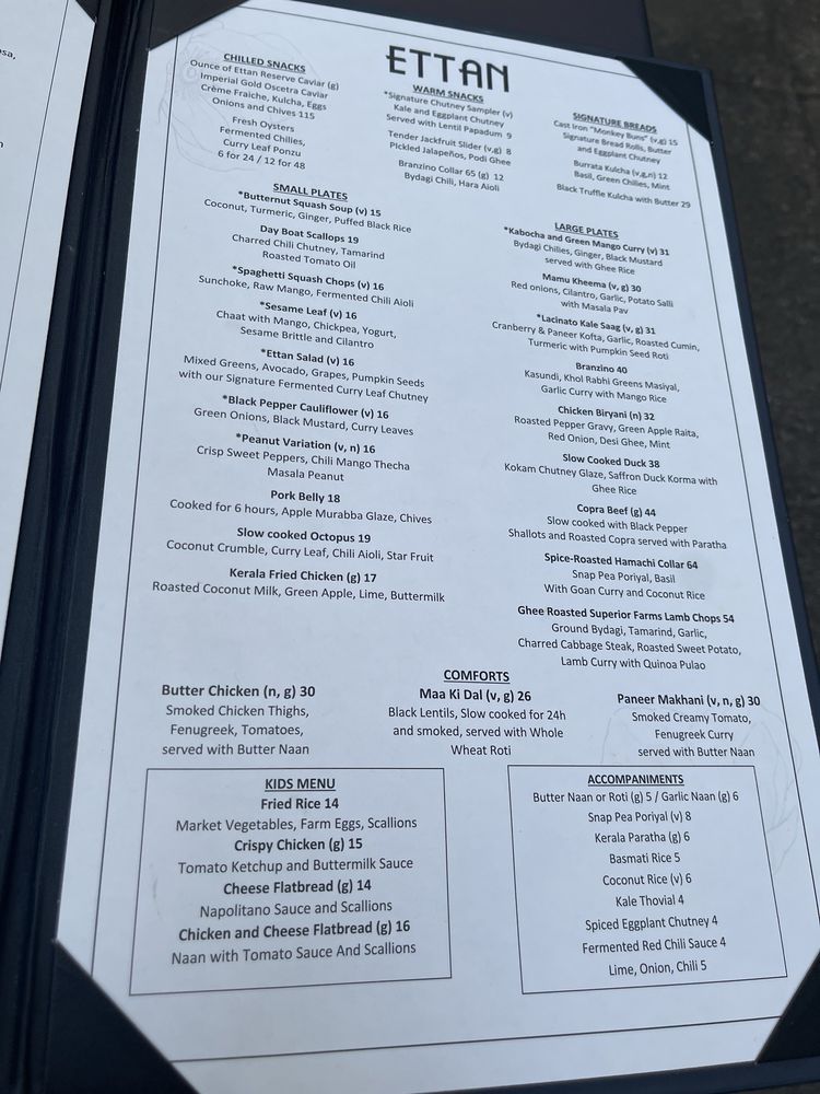 Introducing Ettan, a cocktail bar and Indian seafood restaurant located in Palo Alto, California. Ettan offers a range of unique dishes with options for vegans and limited vegetarian choices. The restaurant provides a classy and upscale dining experience with outdoor seating and a full bar. Customers have praised the beautifully crafted dishes such as sesame leaf chaat, Vellore chicken curry, and Kabocha and green mango curry. The restaurant also offers a variety of cocktails like the honeydew drop. While some dishes like the Kerala fried chicken and burrata kulcha received mixed reviews, Ettan has garnered praise for its innovative twist on traditional Indian flavors. With a Michelin star reputation, Ettan promises a dining adventure with delicious food and excellent service.