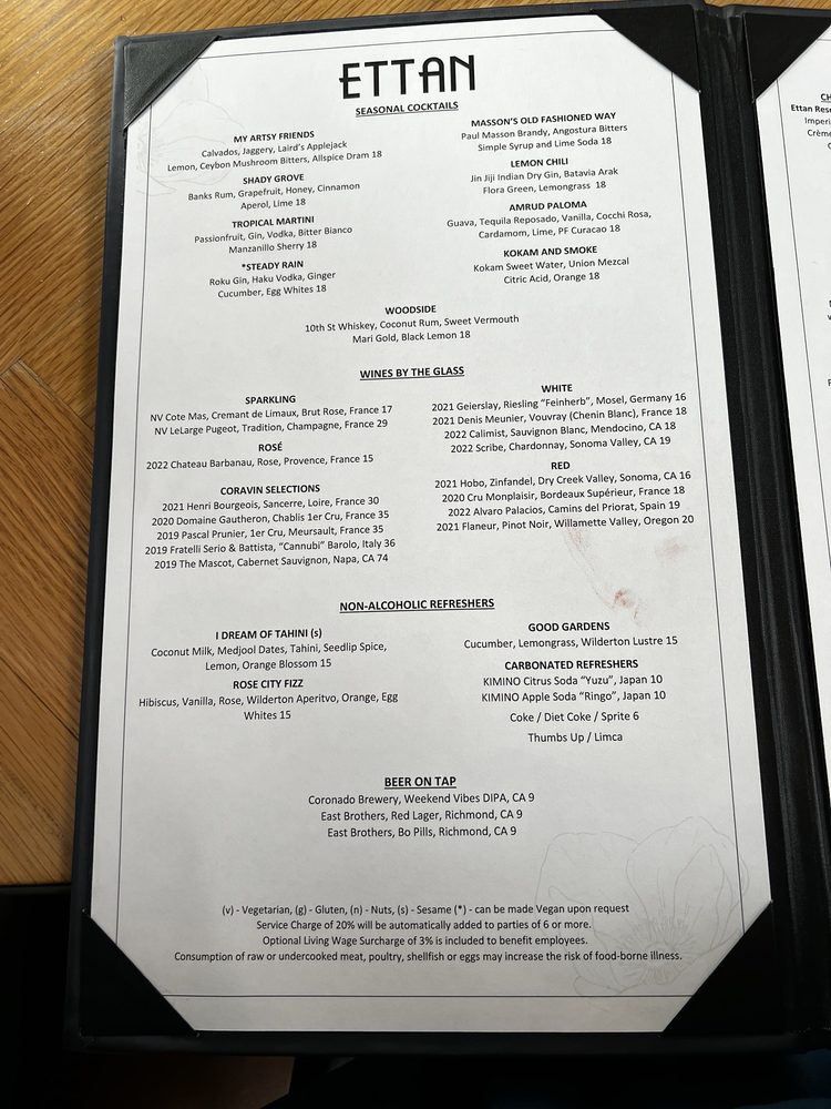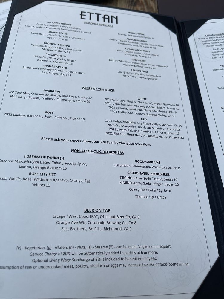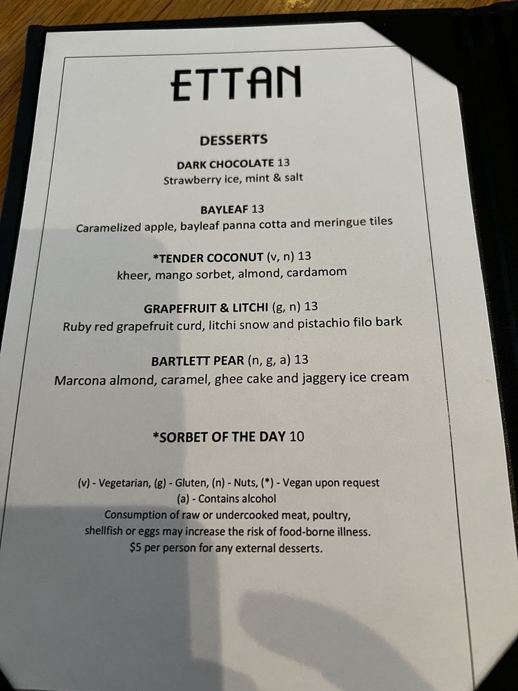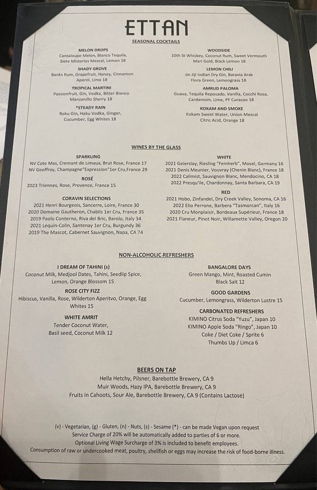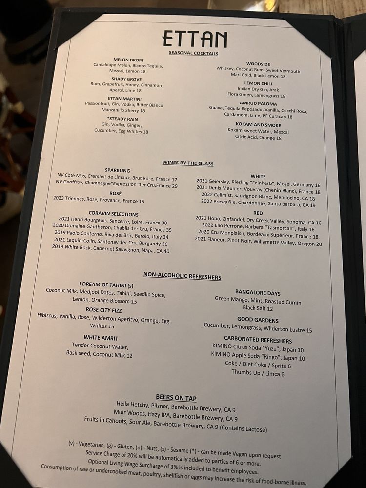 Introducing Ettan, a cocktail bar and Indian seafood restaurant located in Palo Alto, California. Ettan offers a range of unique dishes with options for vegans and limited vegetarian choices. The restaurant provides a classy and upscale dining experience with outdoor seating and a full bar. Customers have praised the beautifully crafted dishes such as sesame leaf chaat, Vellore chicken curry, and Kabocha and green mango curry. The restaurant also offers a variety of cocktails like the honeydew drop. While some dishes like the Kerala fried chicken and burrata kulcha received mixed reviews, Ettan has garnered praise for its innovative twist on traditional Indian flavors. With a Michelin star reputation, Ettan promises a dining adventure with delicious food and excellent service.
